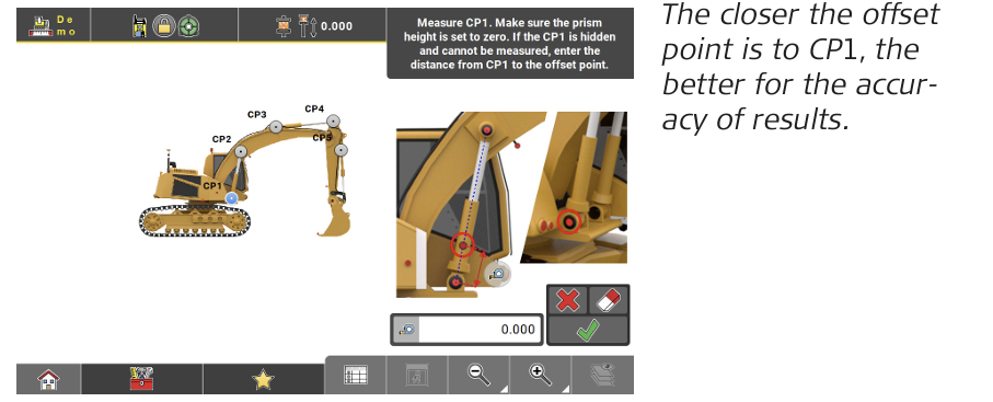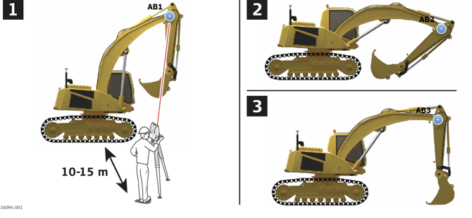 ➜ When calibrating a dual-boom excavator, ensure to keep the angle between first and second boom the same while measuring AB1, AB2 and AB3.