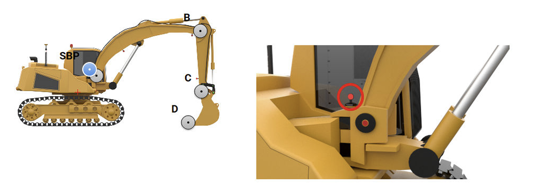 Whenever possible, calibrate the excavator by measuring point A. If point A is not accessible, use the Hidden Point function.