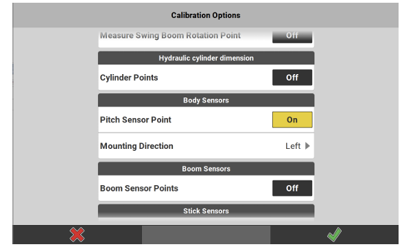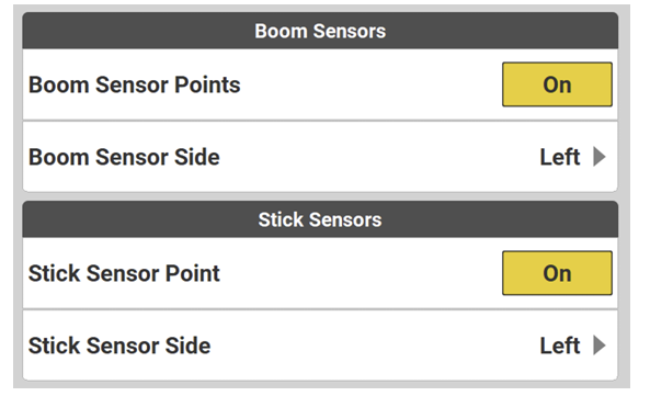 ➜ To calibrate the sensors correctly, make sure to set the side of the Boom Sensor Points/Stick Sensor Point to Left or Right.