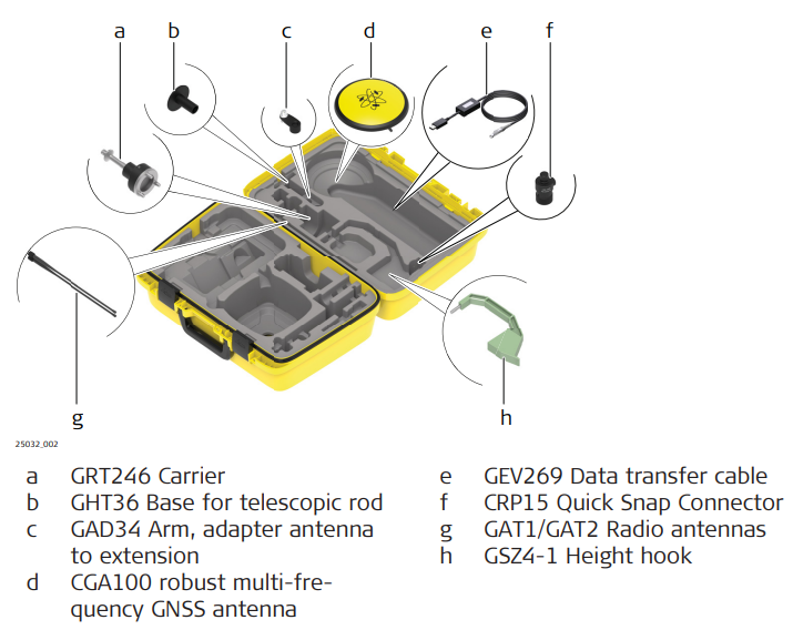 The large-size CTC11 container comprises all items for the Base Station setup. The content of the upper shell is the same for all available container configuration.