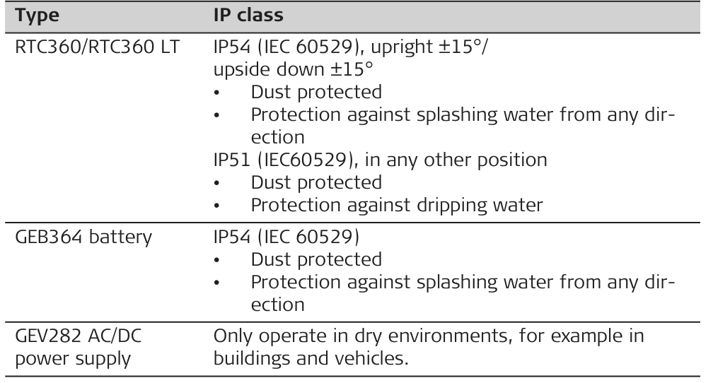 Environmental specifications