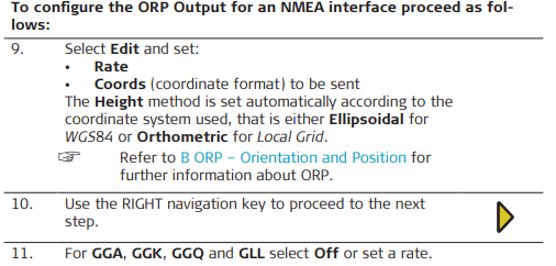 • The ORP message is a Leica proprietary message and delivers position information of one or two antennas.