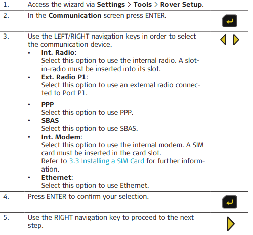 Rover setup description: The instrument can be manually set up as a stand-alone Rover without a controller, using the Rover Setup wizard.