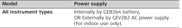 System Concept: Power Concept 3.8.6.1 General Use the batteries, chargers and accessories recommended by Leica Geosystems to ensure the correct operation of the instrument. Power options