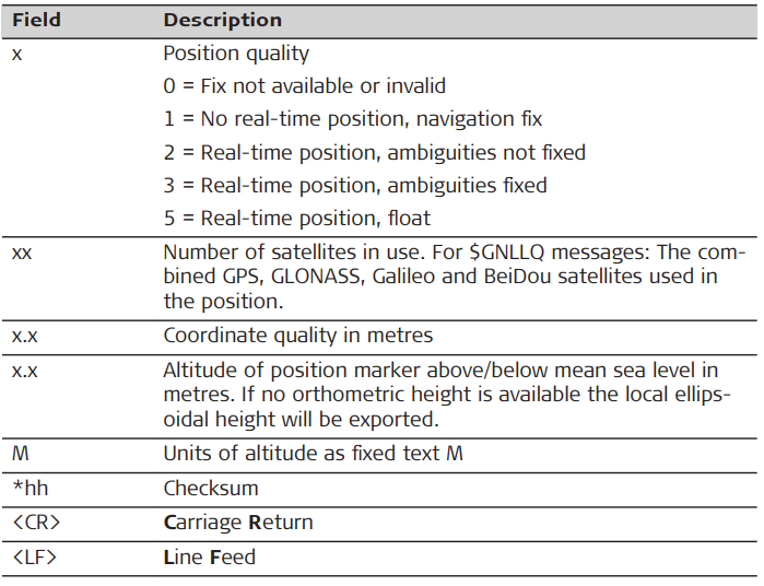 ☞ When more than one GNSS is active only $GNLLQ is output.