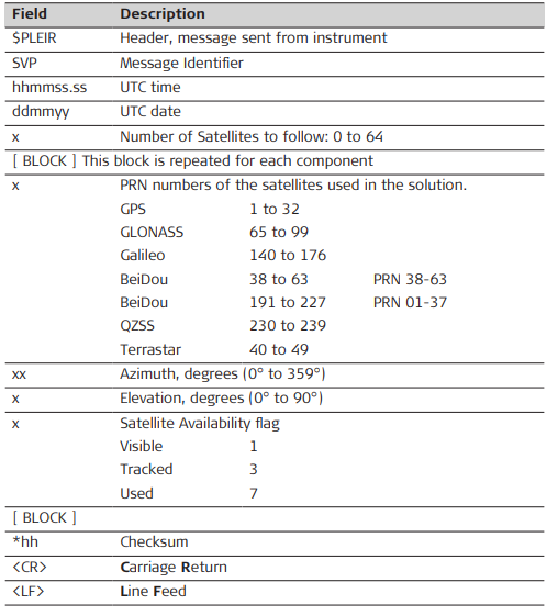 Syntax: $PLEIR,SVP,hhmmss.ss,ddmmyy,x,x,xx,x,x,*hh,,