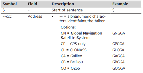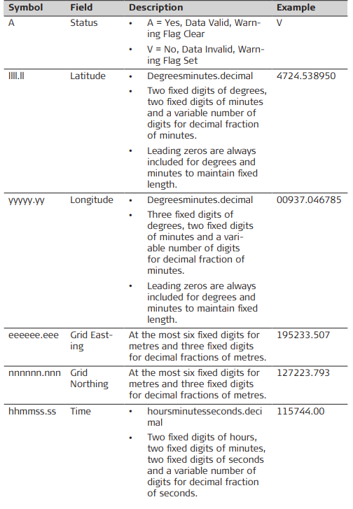 A.2 Symbols Used for Describing the NMEA Formats