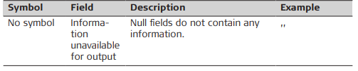 ➜ When information for a field is not available, the position in the data string is empty.