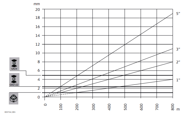 • The following graph shows the ATR standard deviation based on three different prism types, distances and instrument accuracies.