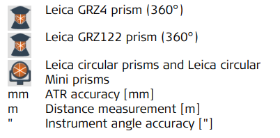 ATR angle accuracy Hz, V (std. dev. ISO 17123-3): 1 " (0.3 mgon)