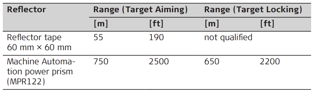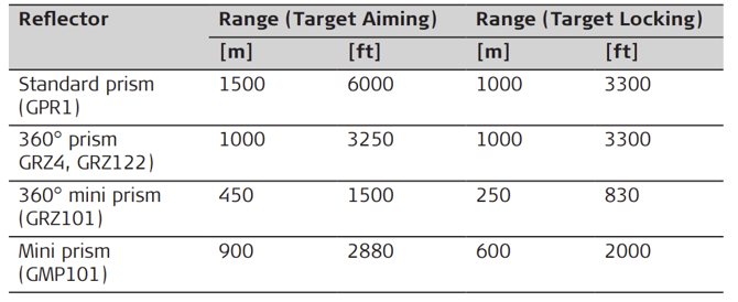 Shortest measuring distance: 360° prism