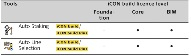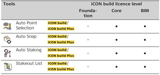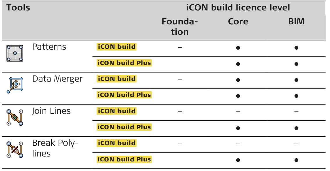 All tools are available on all licence levels except for: