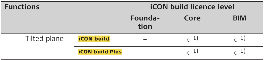 1) Tilted plane is optionally available with an active 'Tilted Plane' licence.