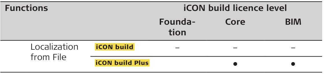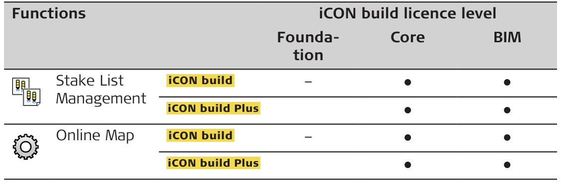 All functions are available on all licence levels except for: