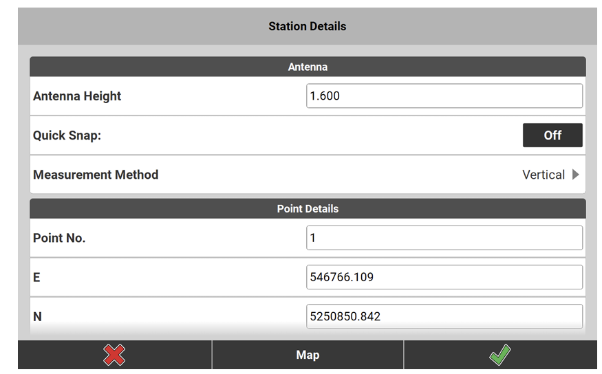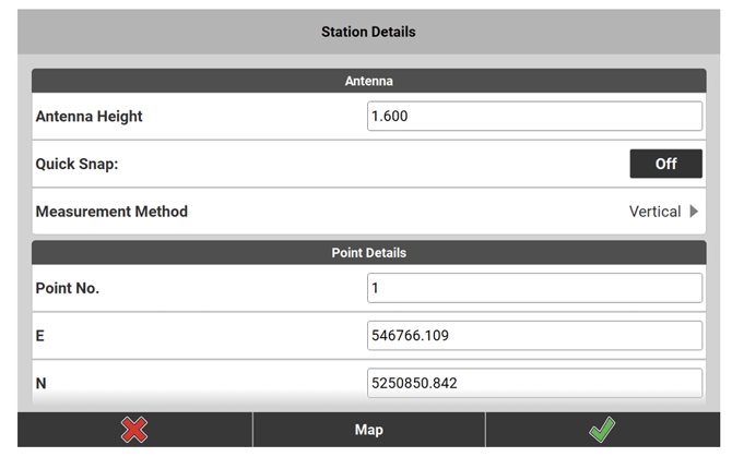 - Enter the antenna and point information in the Station Details screen, tap