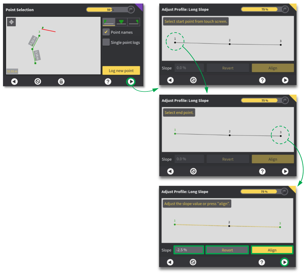 If there are multiple points at different heights, in between start and end point, you can choose to align them (Press