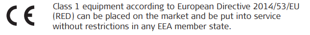 • The conformity for countries with other national regulations not covered by the FCC part 15 or European Directive 2014/53/EU has to be approved prior to use and operation.