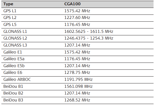• Hereby, Leica Geosystems AG declares that the radio equipment type CGA100 is in compliance with Directive 2014/53/EU and other applicable European Directives. The full text of the EU declaration of conformity is available at the following Internet address: http://www.leica-geosystems.com/ce.