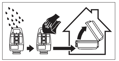 Dry the product, the transport container, the foam inserts and the accessories at a temperature not greater than 40°C /104°F and clean them. Remove the battery cover and dry the battery compartment. Do not repack until everything is completely dry. Always close the transport container when using in the field.