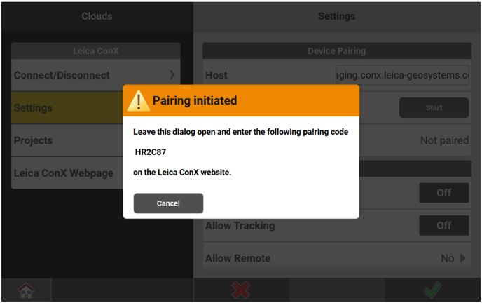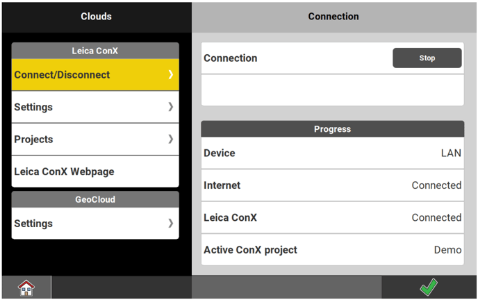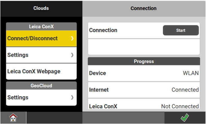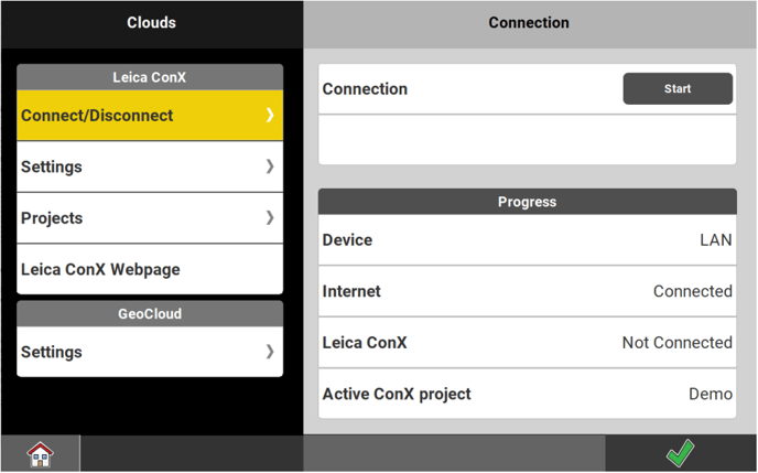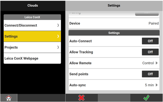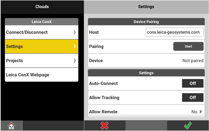 Status bar TPS - Tap Leica ConX Settings and set Host to conx.leica-geosystems.com.