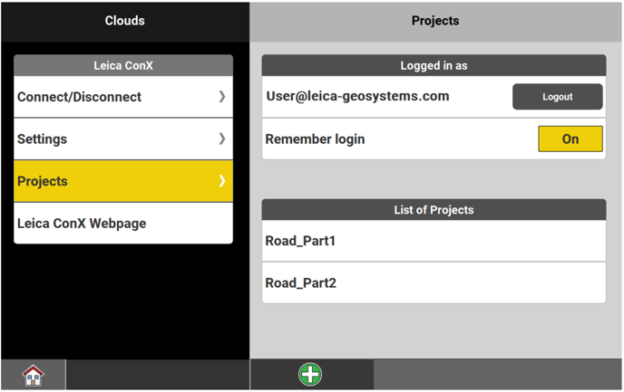 Tap the Logout button if you intend to disconnect from the cloud service - While a connection to the myWorld server is established, GeoCloud is available as a data source for import and export.