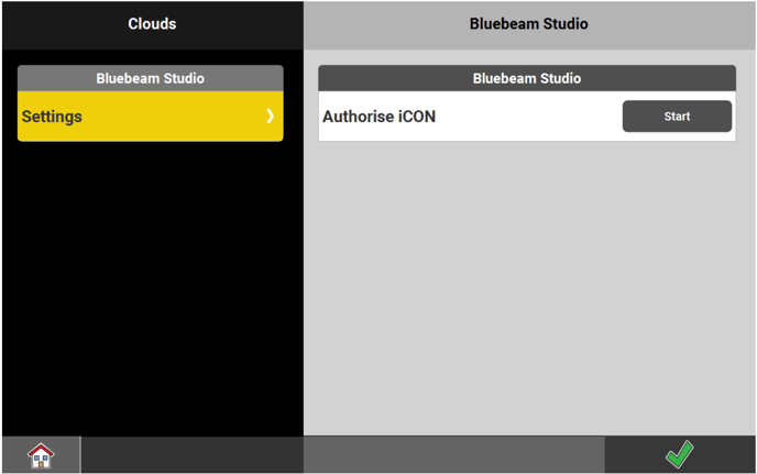 In the background, the iCON software receives an authentication token which is given to the Bluebeam Studio server to get a refresh token. The refresh token is saved in the Projects folder in iCON. You can choose to save your login details using cookies on the default web browser on your device. - The Start button changes to Logout.
