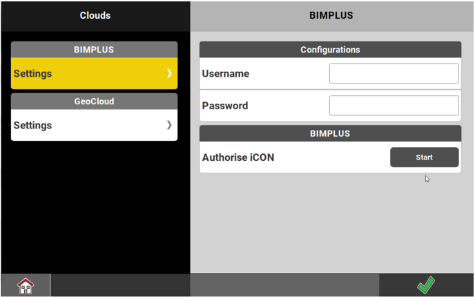 . - Tap Authorize iCON > Start, in order to connect to the BIMPLUS service.