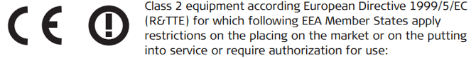 • The conformity for countries with other national regulations not covered by the FCC part 15 or European directive 1999/5/EC has to be approved prior to use and operation.