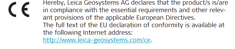 Changes or modifications not expressly approved by Leica Geosystems for compliance could void the user's authority to operate the equipment.