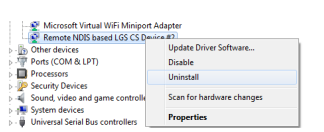 - In Network Adapters, right-click on Remote NDIS based LGS….