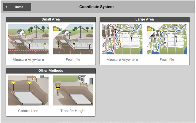 - From the Coordinate System Menu, go to Small Area and tap on Measure Anywhere.