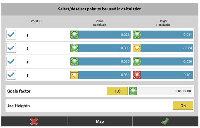 - Tap on individual Plane Residuals or Height Residuals to deselect single values.