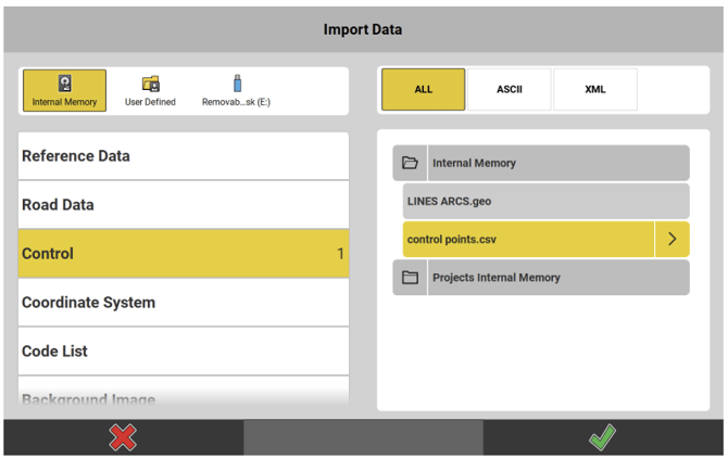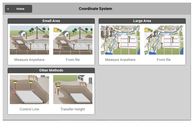 - From the Coordinate System Menu, go to Small Area and tap on From file.
