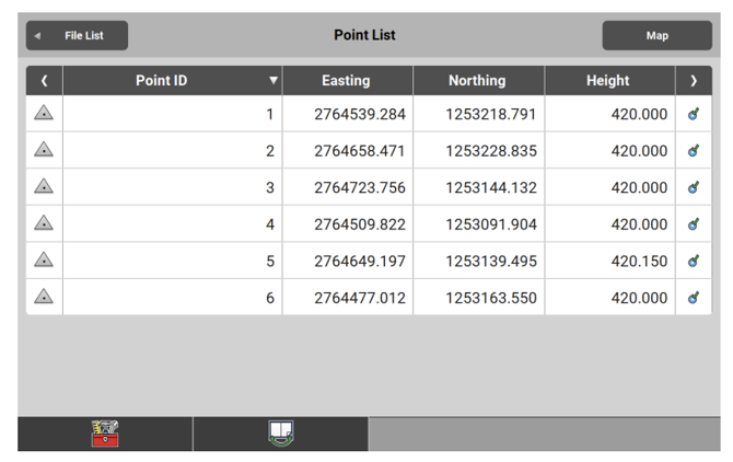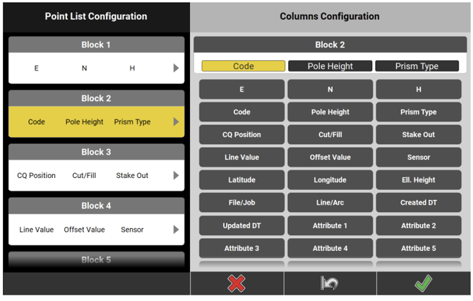 - Tap and hold one of the column headers, for example Northing. (The Point List Configuration page is displayed)