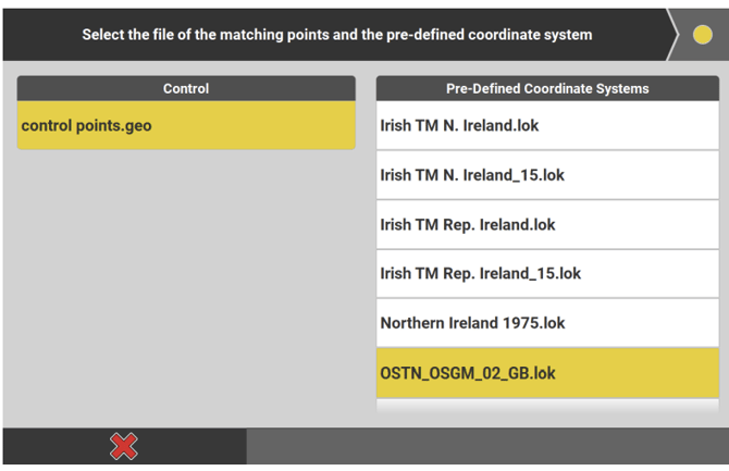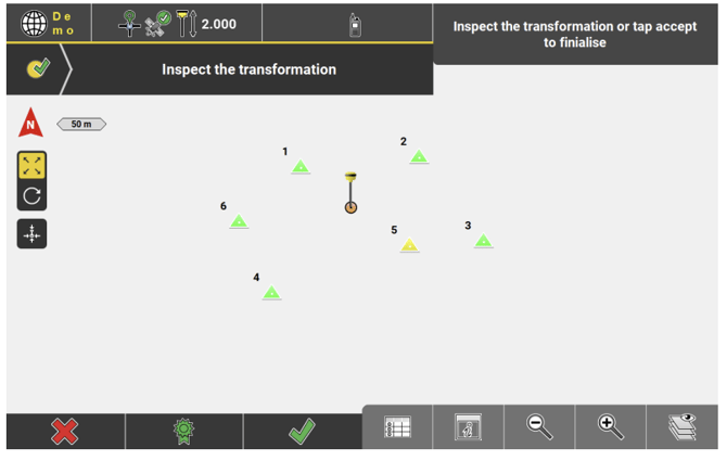 The Map screen is then displayed showing the points that shall be used for the transformation.