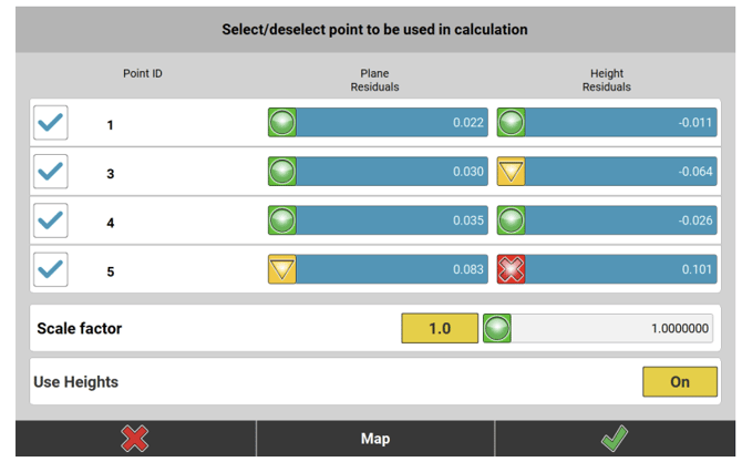 - Tap on individual Plane Residuals or Height Residuals to deselect single values.