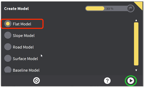 Pro Tip: I recommend you set your Surface Height to Elevation = 0, then you can use Vertical Offsets to set you Flat Model Height while in the Dig/Grade Screen. Otherwise, you will need to make a new Flat Model for each elevation you need to dig/grade to.