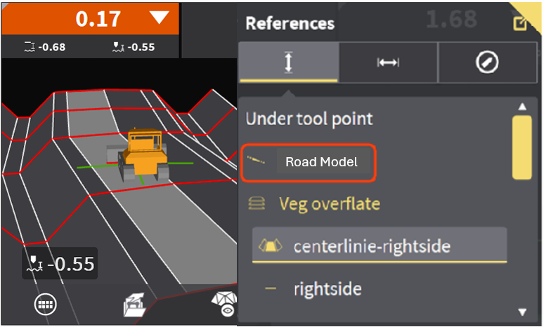 The Road Model works the same as any other Height Reference. Hold your finger on the screen to open up model selection. You can now switch back and forth between Height References on the fly.