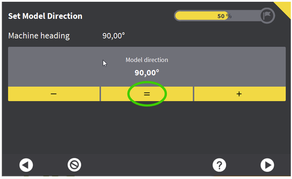 Enter the Height (Elevation) at which the slopes will pass through. You can use the [=] to record the elevation of the current tool point on the bucket/blade. Hit the arrow to proceed.