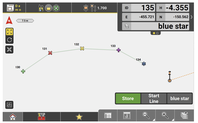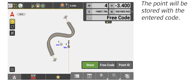 When you tap Store to measure the next point you can again enter a code name, confirm, and the point will be stored with the given code name.