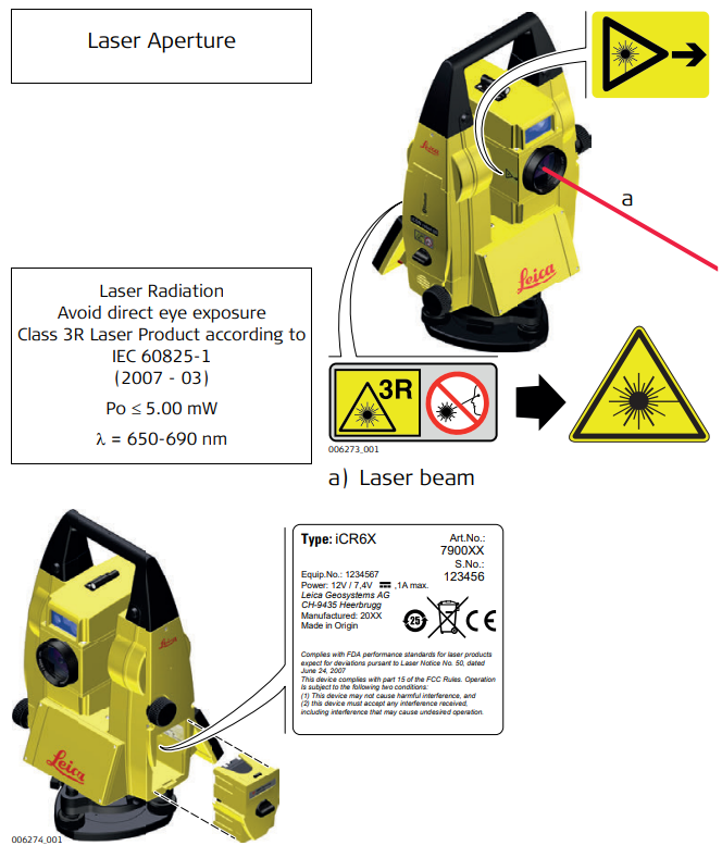 Potential hazards are not only related to direct beams but also to reflected beams aimed at reflecting surfaces such as prisms, windows, mirrors, metallic surfaces, etc.