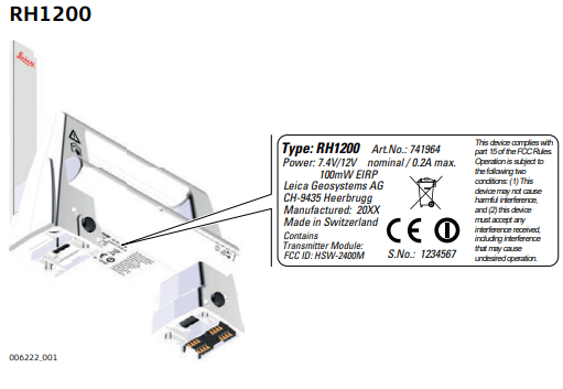 Changes or modifications not expressly approved by Leica Geosystems for compliance could void the user's authority to operate the equipment.