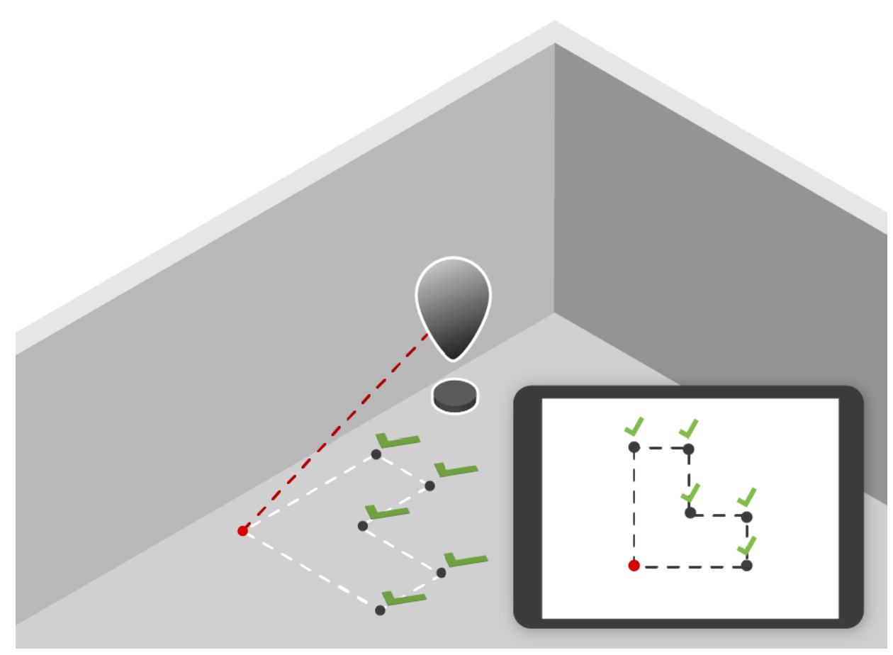 Mark points from the drawing on a floor or ceiling.