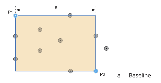 When using a scanning method based on a rectangular area, it is necessary to define two points. The first point defines the start point of the baseline and the second point defines the width of the scan area.