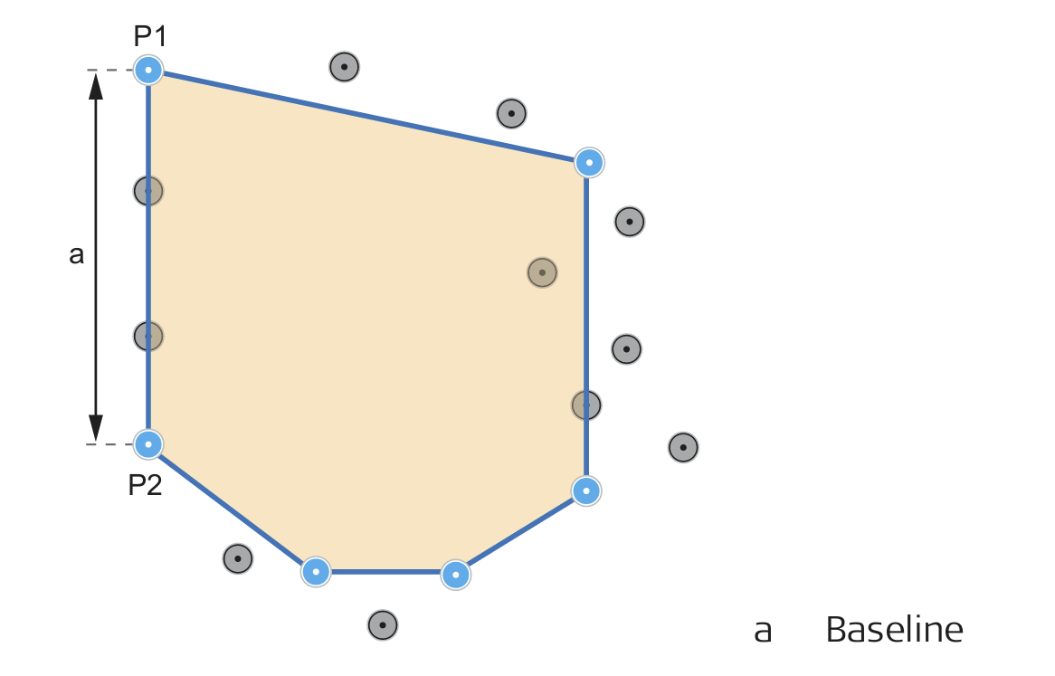 When using a scanning method based on a polygonal area, it is necessary to define at least three points. The first and second points define the baseline of the polygonal scan area. The polygon is closed from the third point on, and every new point creates another corner of the polygon.
