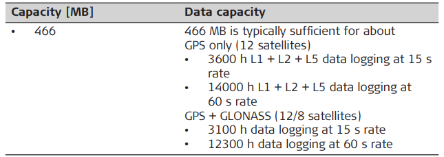 Recording: Data (LeicaGNSS raw data and RINEX data) can be recorded on the internal memory.