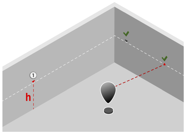Height Transfer Mark a reference height on another wall. Follow the steps indicated in the software. Example: Additional Options: Icon OffsetMark points above or below the reference height. RestartDefine the reference height again.