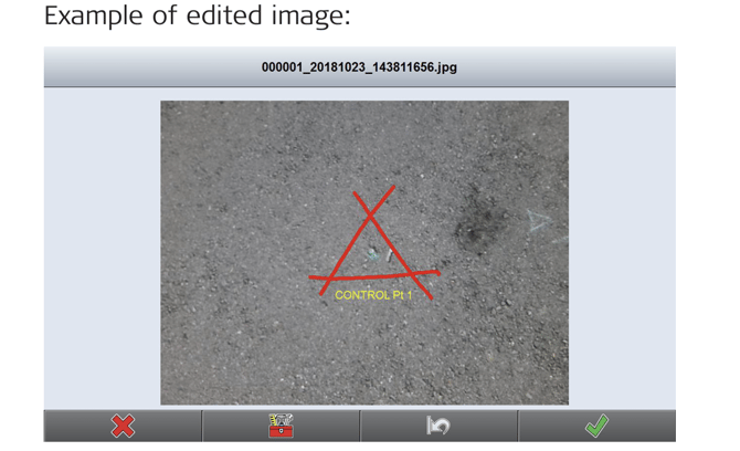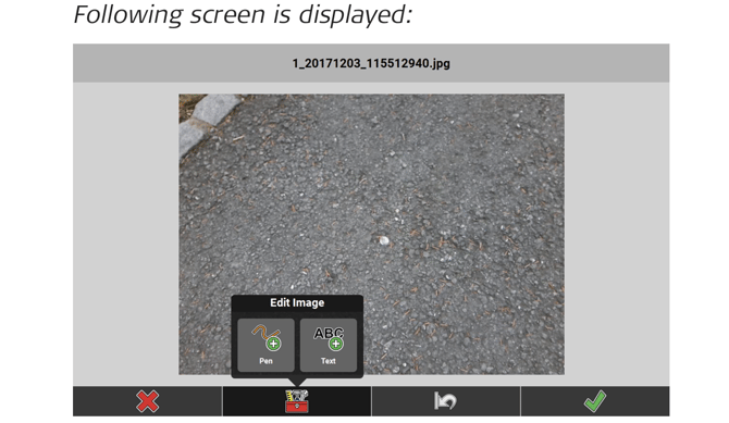 ↪ You can add text and free-hand drawings to a captured image. To edit images directly after capturing, activate the respective option in the camera settings. Refer to Adjusting the camera settings.