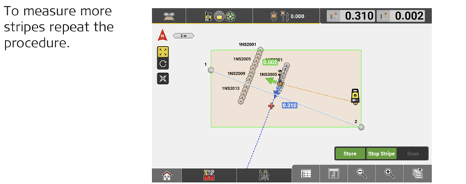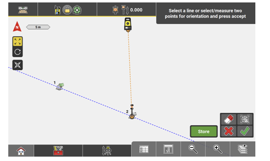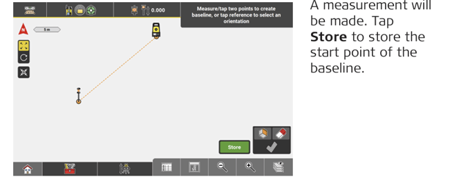 - Aim the instrument at the end point of the stripe in a way that it will be roughly perpendicular or parallel to the baseline, and tap Store.