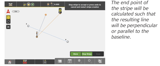 Then tap and accept a second existing point or measure and accept the end point of the baseline. Tap Stop Stripe and then